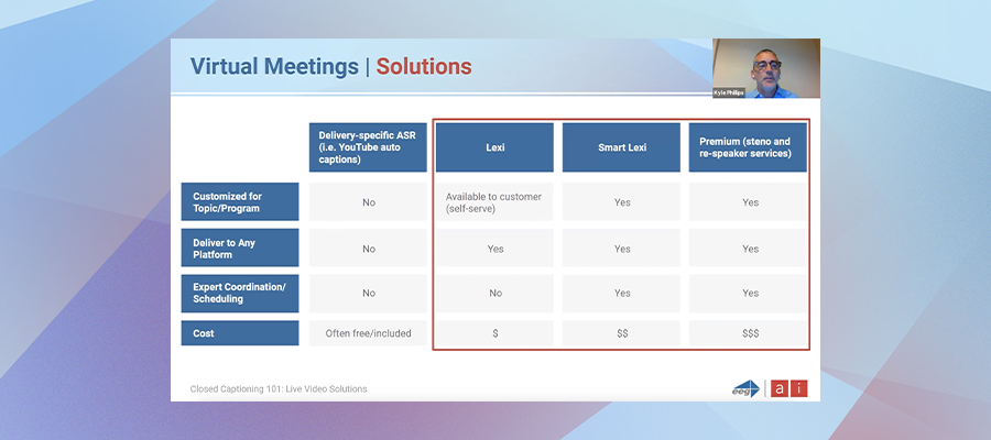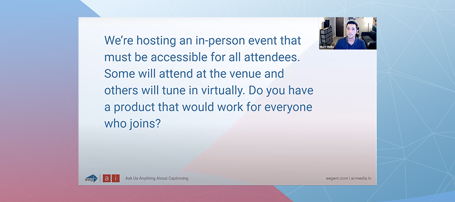 Featured speakers from EEG and Ai-Media answer questions from the audience about closed captioning, live streaming technology, accessibility and more.